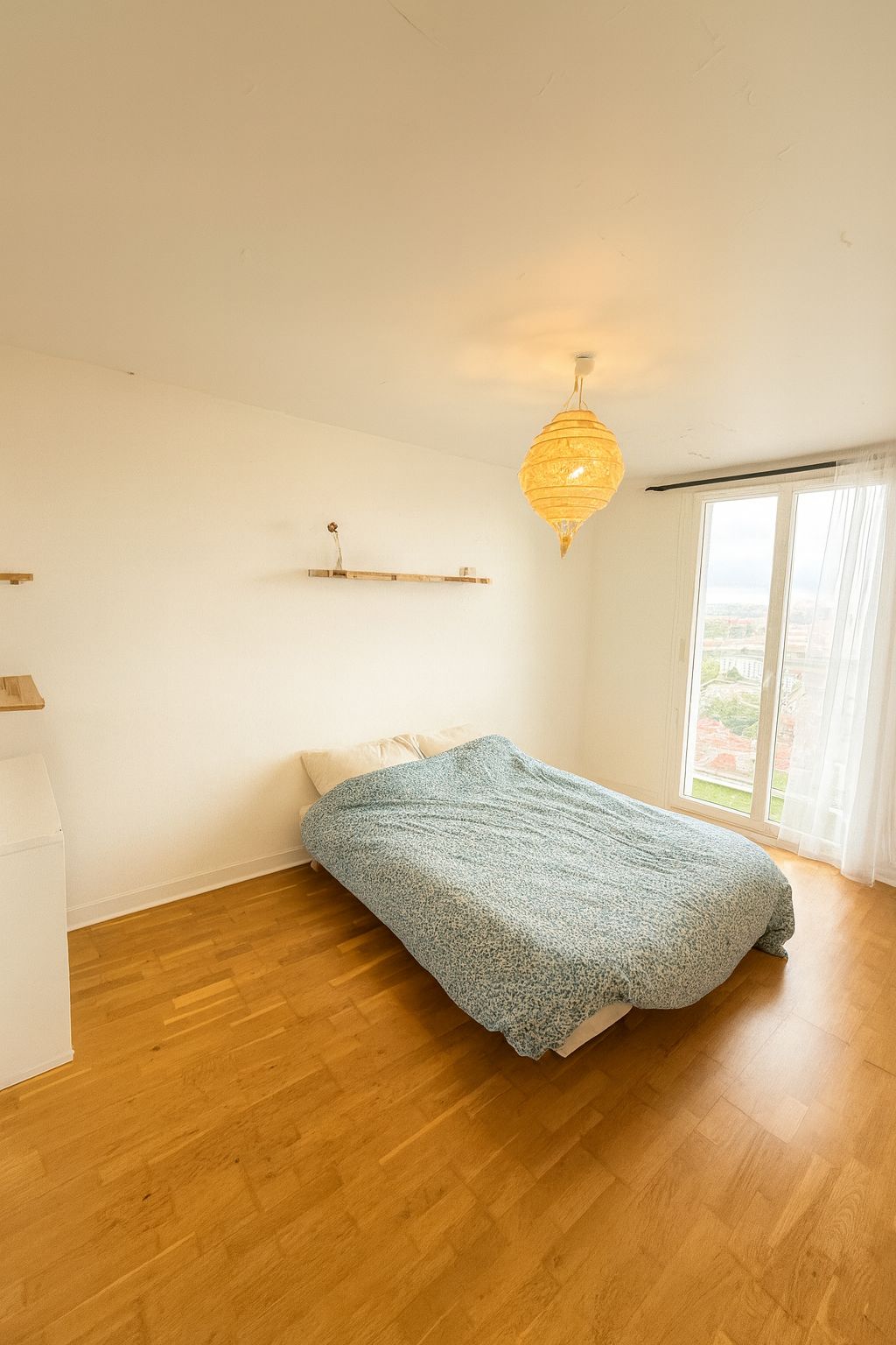 Le séjour, bien que compact, reste agréable et baigné de lumière grâce à son exposition Sud-Est en hauteur. Côté nuit, l’appartement offre deux chambres bien séparées, dont une avec accès direct à une loggia fermée : un espace calme, en hauteur avec vue panoramique
